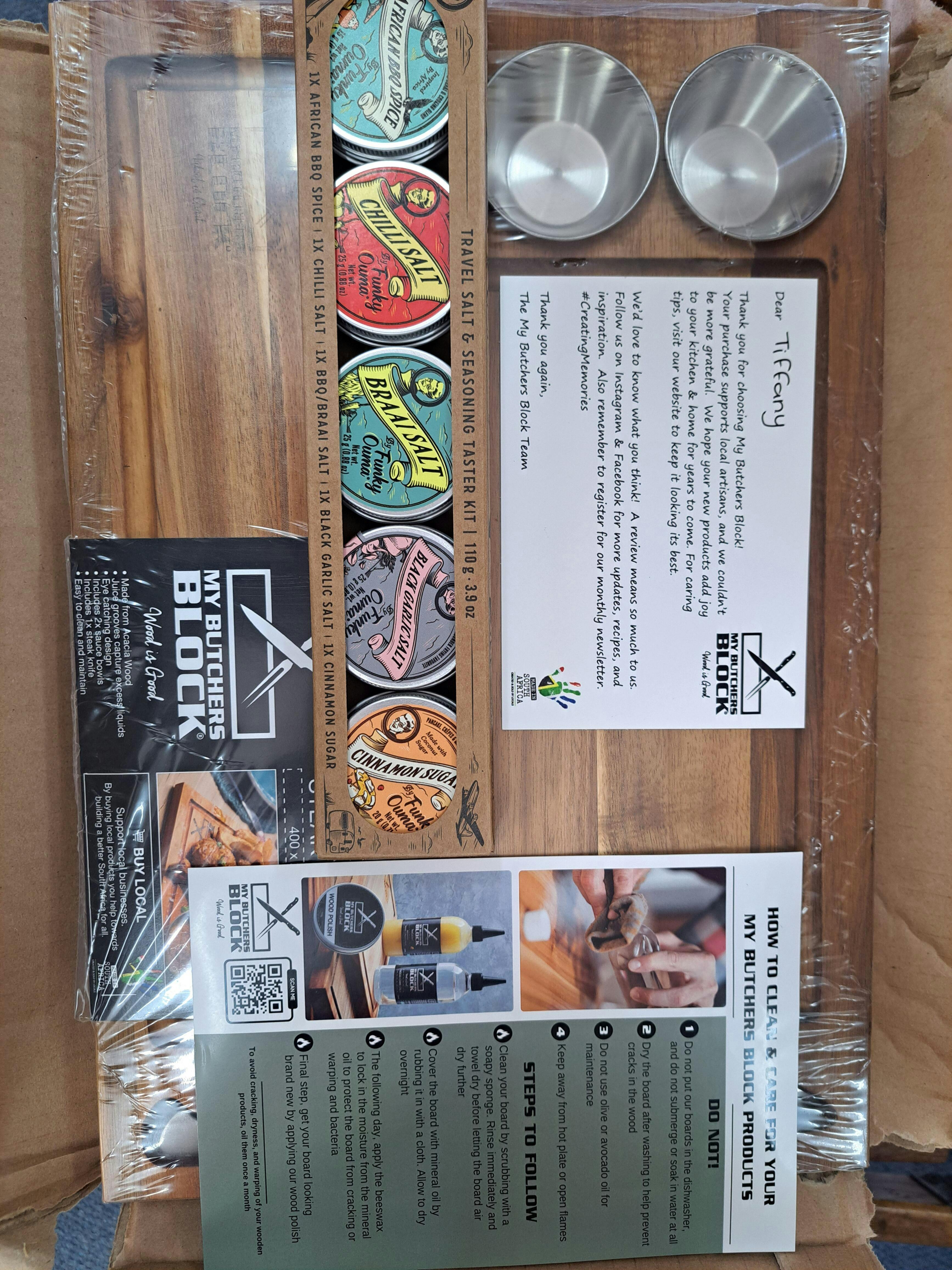 With two built-in bowls, a sleek steak knife snugly fitted into the board, and a deep juice groove to catch every drop, this combo is the ultimate crowd-pleaser. And when you add five gourmet Funky Ouma seasonings? You’ve got a flavour-packed feast waiting to happen.